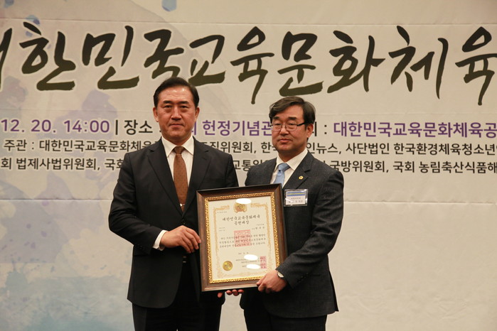 한편 대한민국교육문화체육공헌대상(대회장 이찬열, 국회 교육위원장)은 교육·문화·환경·체육 등 사회 각 분야에서 결과보다는 과정을 중시하고, 지속가능한 사회 구축을 위해 묵묵히 공헌한 숨은 인물들을 발굴해 시상하는 상이다.