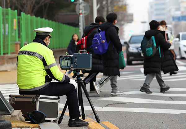 | ▲ 어린이보호구역에서 과속 차량은 단속하고 있는 모습. <사진 : 연합뉴스> |