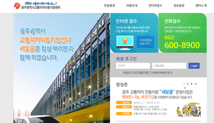 | ▲ 광주광역시 교통약자지원센터 홈페이지. |