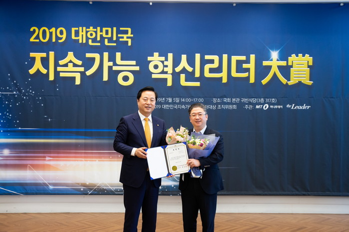 한편, 「2019대한민국지속가능혁신리더대상」 조직위원회가 주최하며 머니투데이, 더리더가 주관한 이번 행사는 정치·사회·경제·교육·체육·문화·예술·환경 등 전 분야에 걸쳐 지속적인 혁신을 바탕으로 위 분야에 기여한 지자체·기관·법인 및 단체·개인 리더를 발굴하고 포상하기 위해 마련됐다.
