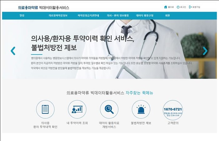 | ▲ 의료용 마약류 빅데이터 활용서비스' 홈페이지. <자료 : 식약처> |
