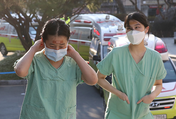 | ▲ 코로나19 확진자 진료활동을 마친 의료진들. <사진 : 연합뉴스> |