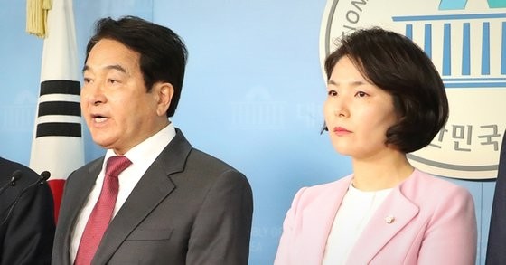 | ▲ 미래한국당 심재철 대표와 전희경 대변인. <사진 : 연합뉴스> |