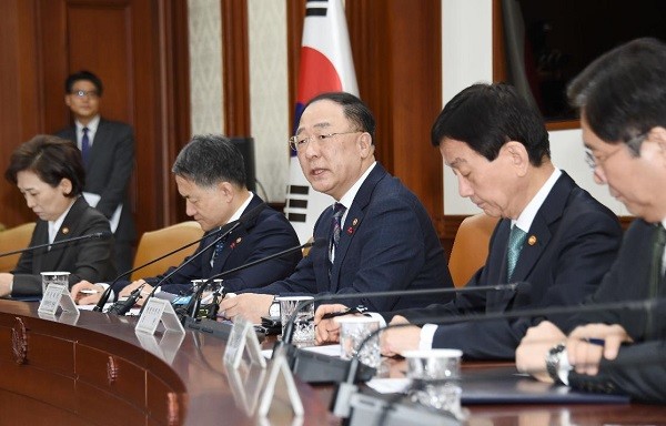 홍 부총리는 “국제금융시장의 경우 신종 코로나바이러스 확산으로 위험회피 심리가 커지면서 변동성이 확대되는 모습”이라며 “국내금융시장도 주가가 일부 하락하고 환율도 약세 흐름을 보였으나 우리 금융시장의 복원력과 탄탄한 대외건전성 등을 고려할 때 금융시장에 미칠 영향에 대한 과도한 우려는 경계할 필요가 있다”고 했다.