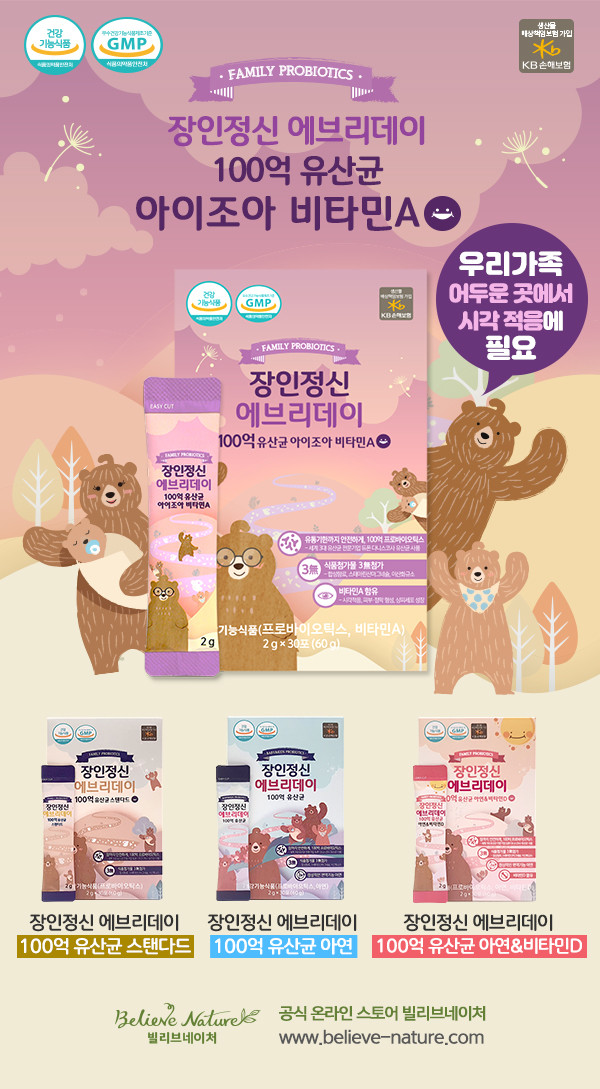 ‘장인정신 에브리데이 100억 아이조아 비타민 A’는 마리골드 꽃 추출물을 함유한 건강기능식품으로 어두운 곳에서의 시각 적응과 피부 및 점막 형성에 필요한 비타민A가 첨가된 유산균이다.