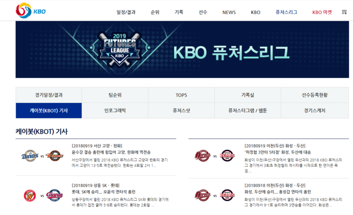 | ▲KBO 홈페이지내 KBOT 기사 |