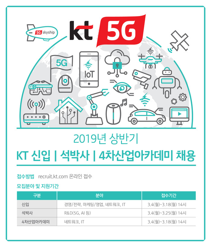 KT가 5G 시대를 선도할 인재 채용에 나선다.