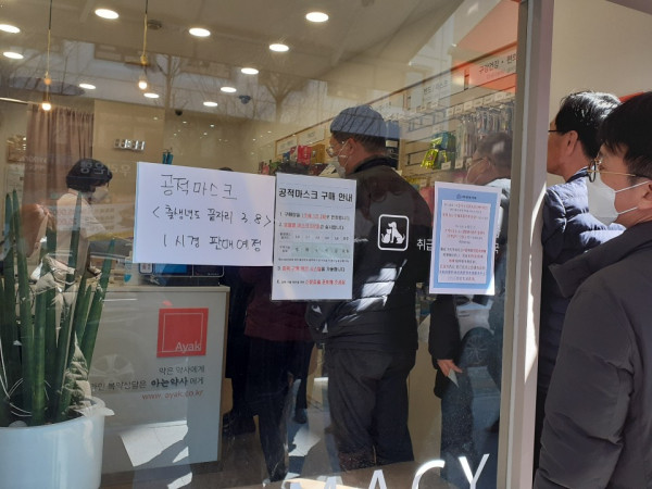 | ▲ 공적마스크 구입을 위해 약국에 줄을 서서 기다리는 모습. |