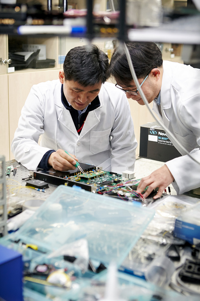 | ▲ 연구원들이 양자암호통신을 연구하고 있다. |