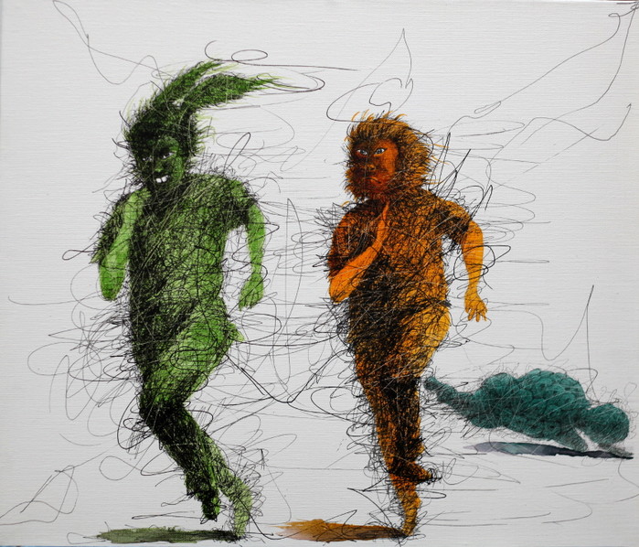 ▲자르기 05 경쟁 acrylic ink on canvas (52X45cm) 2018 <제공:인천학생교육문화회관> |