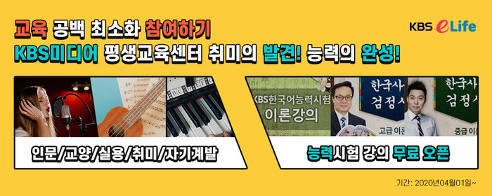 KBS미디어 평생교육센터(이하 KBSeLife)는 시민, 초중고 및 대학교, 각 지자체 등에서 교육 운영이 안정화되지 않고 교육 공백이 길어짐에 따라 이를 최소화하기 위해 다양한 교육과정을 무료 또는 할인하여 제공한다.