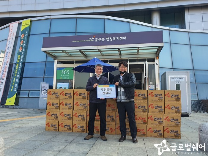 18일 파주의 문산읍행정복지센터(읍장 이동림)에 라면 2800개를 1차로 전달했으며, 지속적으로 코로나19로 어려움을 겪는 곳에 필요한 물품을 전달하고자 계획 중에 있다고 밝혔다.
