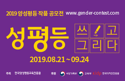 한국양성평등교육진흥원(원장 나윤경, 이하 양평원)이 아동·청소년과 일반국민을 대상으로 하는 ‘2019 양성평등 작품 공모전(이하 공모전)’의 접수를 시작한다.