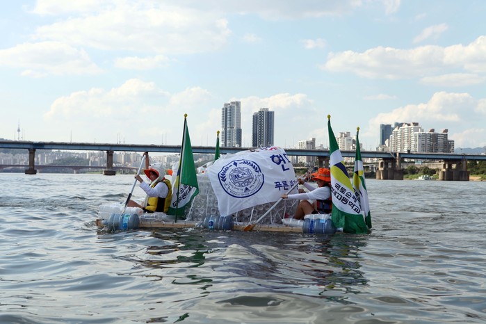 서울 강남구에 위치한 현대고등학교(교장 강승원) 1학년 1반 학생들이 직접 만든 플라스틱 뗏목으로 한강을 건너며, 새로운 추억을 만들었다.