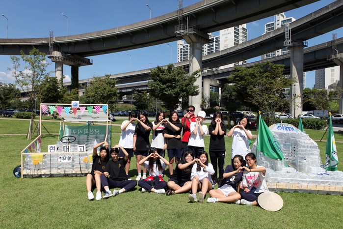현대고등학교 1학년 1반 학생들이 지난 9월 8일과 9일 양일간, 뚝섬한강공원에서 열린 “제2회 플라스틱병 뗏목 한강건너기”대회에 참가했다. 이번 대회는 서울특별시 한강사업본부와 사단법인 한국환경체육청소년서울연맹이 주최 및 주관했으며, 서울특별시, 국회 환경노동위원회, 국회 교육위원회, 서울특별시의회, 서울특별시교육청, 한국환경공단, 머니투데이 더 리더, KNS뉴스통신이 후원했다. 또 (유)돌코리아와 캘리포니아아몬드협회, 일동후디스(주)가 협찬했다.