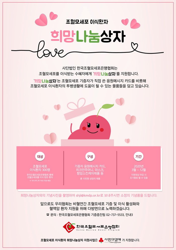 | ▲ 조혈모세포 이식환자 희망나눔상자 지원 안내 |