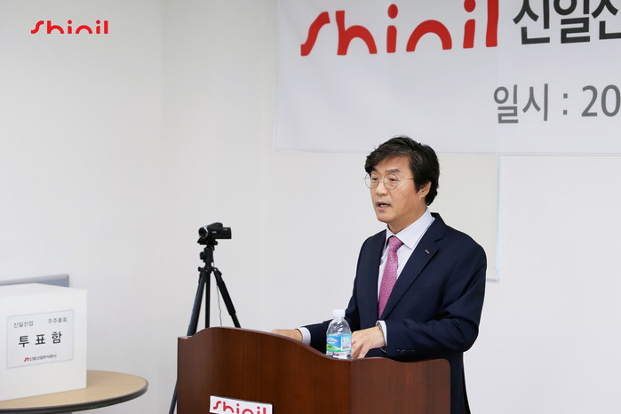 | ▲ 신일 정윤석 대표이사가 제61기 정기주주총회를 진행하고 있다. |