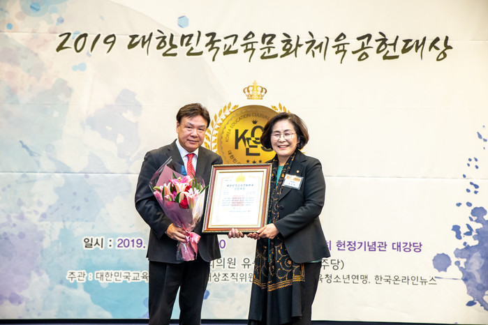 한편 2019대한민국교육문화체육공헌대상(대회장 유승희, 더불어민주당)은 교육·문화·환경·체육 등 사회 각 분야에서 결과보다는 과정을 중시하고, 지속가능한 사회 구축을 위해 묵묵히 공헌한 숨은 인물들을 발굴해 시상하는 상이다.