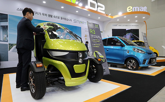 | ▲ 지난해 11월 1일 대구 엑스코에서 열린 ‘대구 국제 미래자동차엑스포 2018’에 참여한 한 기업이 소형 전기자동차를 선보이고 있다. <사진 : 연합뉴스> |