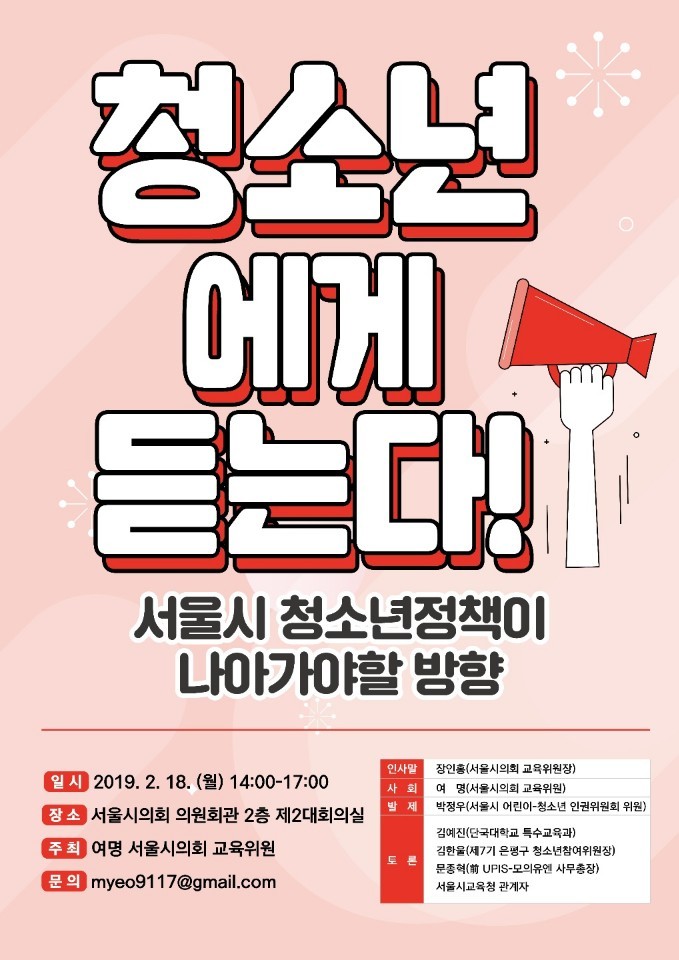▲오는 2월 18일 서울시 청소년정책을 이야기하는 자리가 펼쳐진다. |