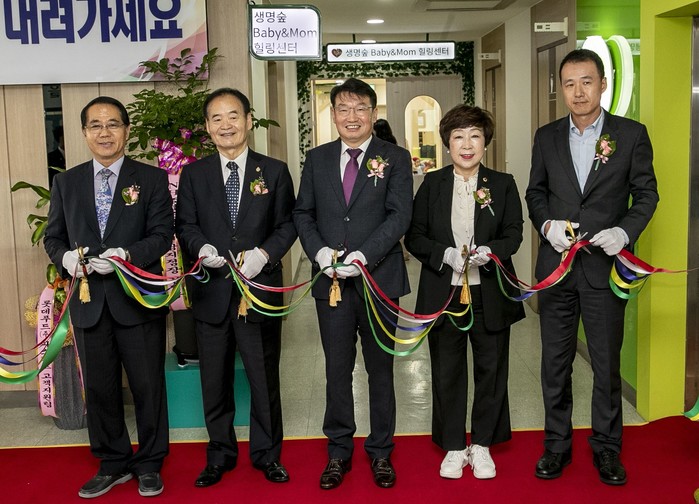 생명보험사회공헌재단(이사장 이종서, 이하 생명보험재단)은 27일 인구보건복지협회 경남지회에서 출산환경 개선을 위한 ‘생명숲 Baby&Mom 힐링센터’를 개소했다. 이날 행사는 인구보건복지협회 신언항 회장, 경상남도의회 윤성미 의원, 생명보험재단 조경연 상임이사 등이 참석한 가운데 진행됐다.