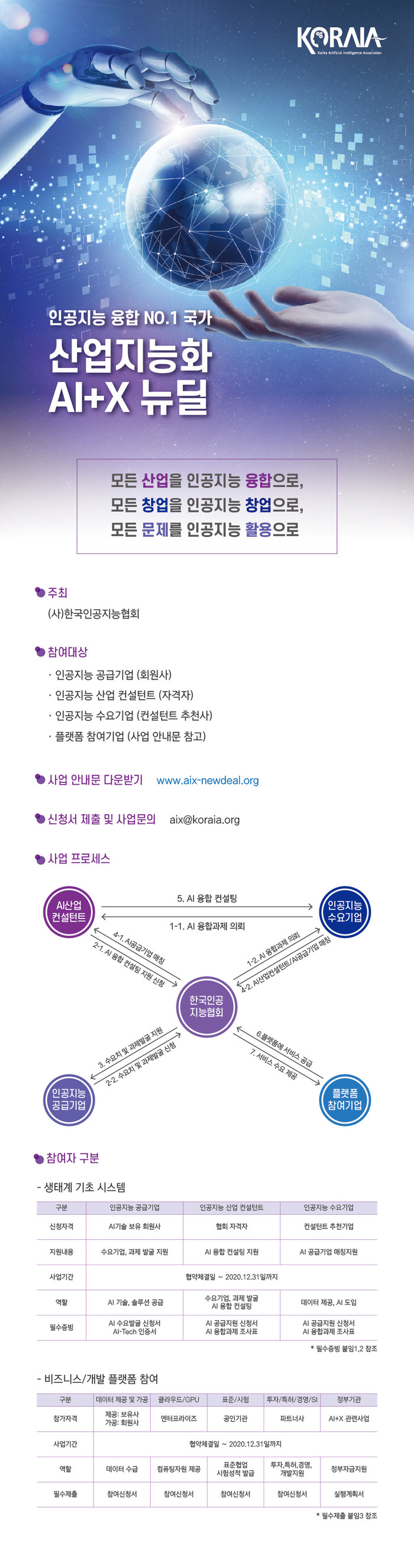 | ▲ 한국인공지능협회가 산업지능화 AI+X 뉴딜 사업을 시작한다 |