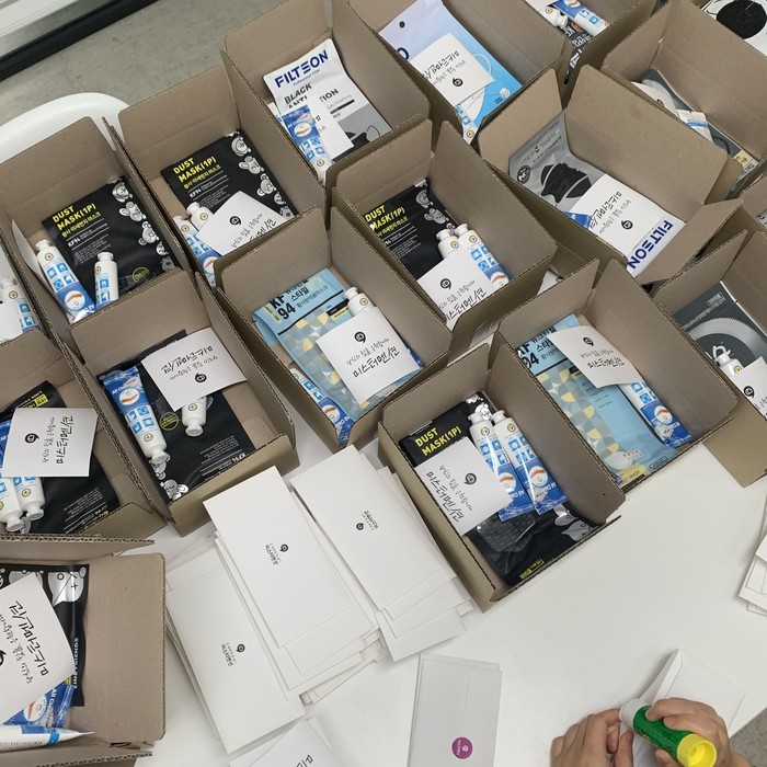 | ▲ 미스터멘션이 서비스 이용 고객에게 무료 제공하는 마스크와 손 세정제. |