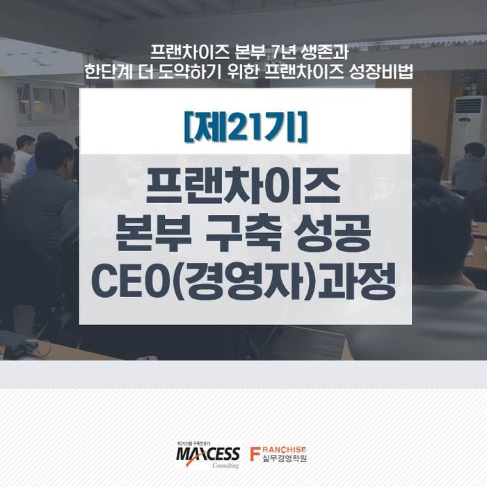 ▲ 맥세스컨설팅은 ‘제21기 프랜차이즈 본부 구축 성공 CEO(경영자) 과정’을 개최한다 |