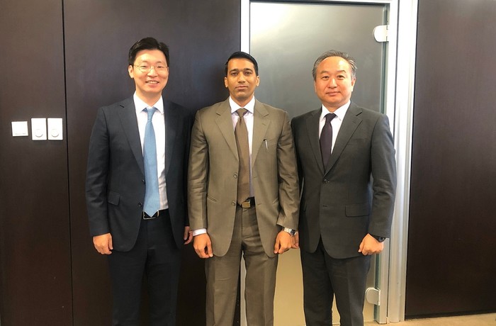 | ▲ 왼쪽부터 시큐레터 임차성 대표, KSU Dr. 무하마드 쿠람 칸 교수, 시큐레터 이윤수 COO가 사우디아라비아의 정부투자기관인 RVC와 투자 미팅 후 기념촬영을 하고 있다. |