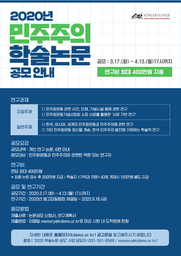 | ▲ 2020년 민주주의 학술논문 공모 안내. |