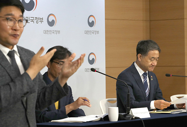 ▲박능후 보건복지부 장관이 25일 정부서울청사에서 열린 ‘장애인 지원체계 개편 브리핑’에서 발언하고 있다. <사진 : 연합뉴스> |