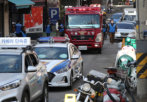 | ▲한 지자체 주최로 ‘주민과 함께하는 소방차 통행로 확보’ 훈련이 열리고 있다.<사진 : 연합뉴스> |