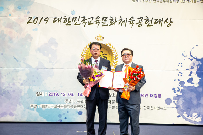 한편 2019대한민국교육문화체육공헌대상(대회장 유승희, 더불어민주당)은 교육·문화·환경·체육 등 사회 각 분야에서 결과보다는 과정을 중시하고, 지속가능한 사회 구축을 위해 묵묵히 공헌한 숨은 인물들을 발굴해 시상하는 상이다.