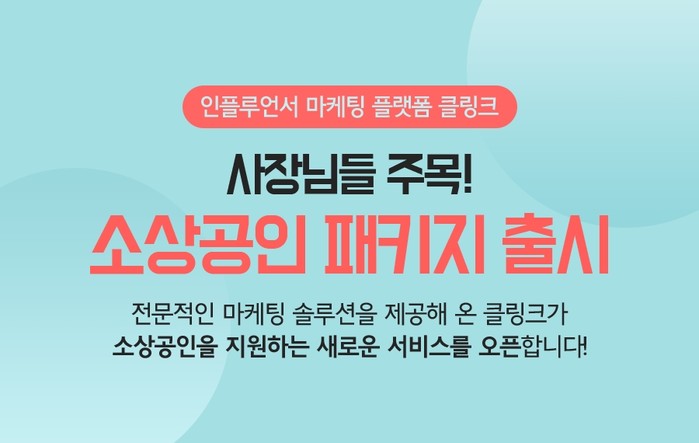 인플루언서 마케팅 플랫폼 클링크(CLNK)가 마케팅에 큰 비용을 투자하기 힘든 소상공인을 대상으로 ‘소상공인 패키지’를 출시했다.