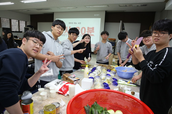 | ▲ 국립중앙청소년수련원 수능 이후 고3캠프에 참가한 청소년들이 과일청과 샌드위치를 만들고 있다. |