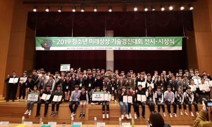 한국산업기술진흥원(원장 석영철, 이하 KIAT)은 11월 19일 킨텍스 그랜드볼룸에서 ‘2019년 청소년 미래상상 기술경진대회’ 시상식을 개최했다.