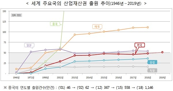 | ▲ 세계 주요국의 산업재산권 출원 추이 |