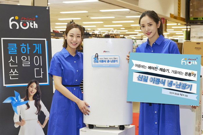 신일의 냉난방기는 여름철에는 이동식 에어컨과 제습기로, 겨울철엔 온풍기로 사용 가능하며, 송풍 기능까지 갖춰 사계절 내내 사용할 수 있는 것이 특징이다. 환경에 유해하지 않은 친환경 냉매를 적용한 제품으로 별도의 실외기가 없어 전원만 연결하면 어느 공간에서나 사용 가능하다.
