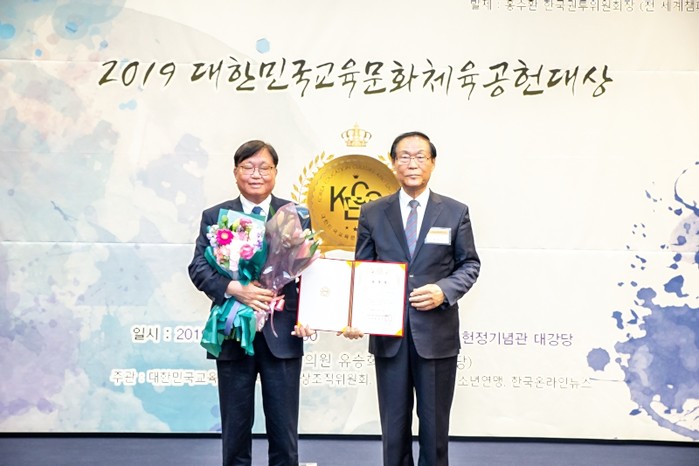 한편 2019대한민국교육문화체육공헌대상(대회장 유승희, 더불어민주당)은 교육·문화·환경·체육 등 사회 각 분야에서 결과보다는 과정을 중시하고, 지속가능한 사회 구축을 위해 묵묵히 공헌한 숨은 인물들을 발굴해 시상하는 상이다.