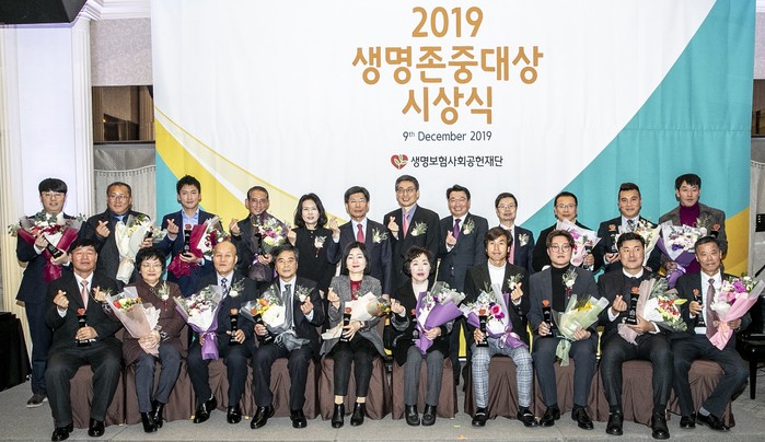 생명보험사회공헌재단(이사장 이종서, 이하 생명보험재단)이 9일 오전 11시 서울 프레스센터에서 ‘2019 생명존중대상’ 일반인 부문 시상식을 개최하고 자기희생과 용기로 타인의 생명을 구한 우리 사회 속 시민 영웅 17명을 시상했다.
