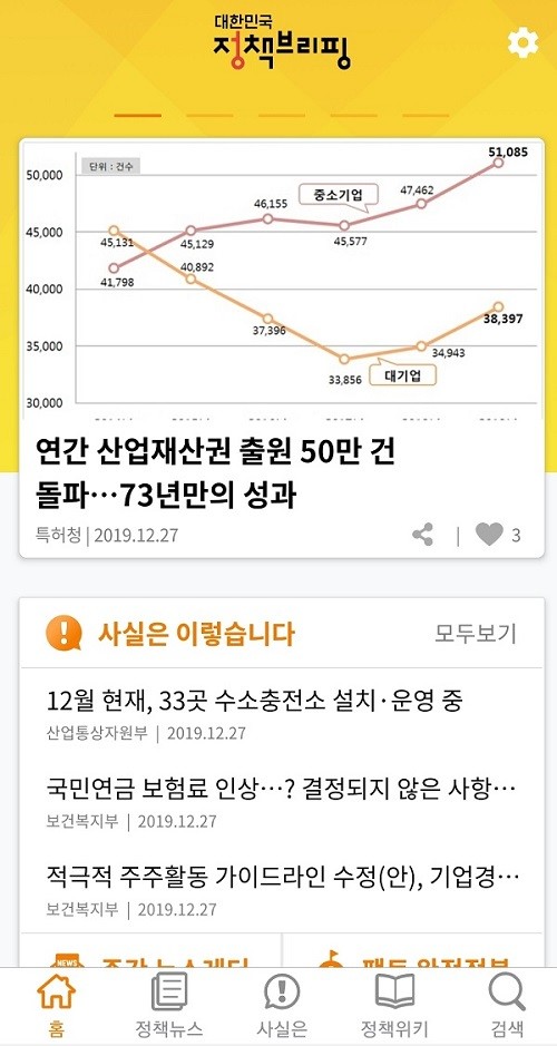| ▲ ‘대한민국 정책브리핑’ 앱 메인화면 모습. |