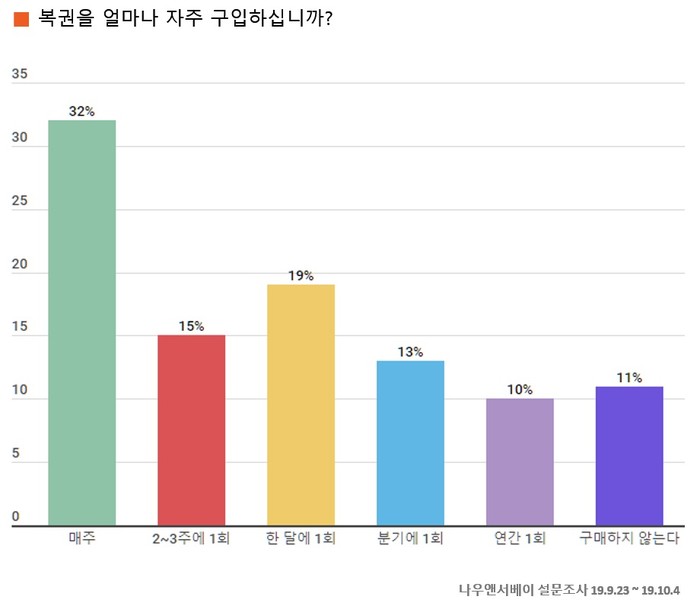 | ▲ 복권 얼마나 자주 구매하십니까 설문 결과. |