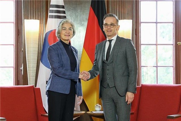 강경화 외교부 장관은 25일(현지시간) 오후 독일 베를린에서 열린 ‘제2차 스톡홀름 이니셔티브 장관급 회의’에 참석해 하이코 마스 독일 외교장관과 회담을 갖고 코로나바이러스감염증-19(코로나19) 대응과 P4G 정상회의, 한반도 정세 등에 대해 논의했다.