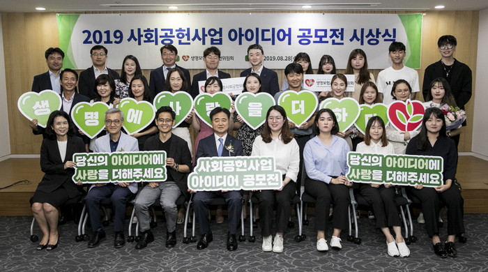 생명보험사회공헌위원회(공동위원장: 신용길 생명보험협회 회장·이경룡 서강대 명예교수, 이하 위원회)는 28일 생명보험교육문화센터에서 ‘2019 사회공헌사업 아이디어 공모전’ 시상식을 개최했다고 밝혔다.