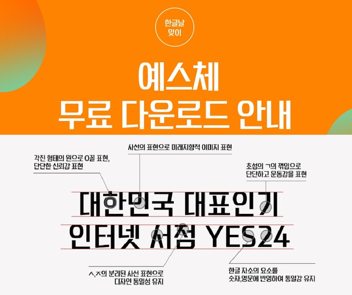 | ▲ 예스24가 한글날을 맞아 예스체를 무료 배포한다. |