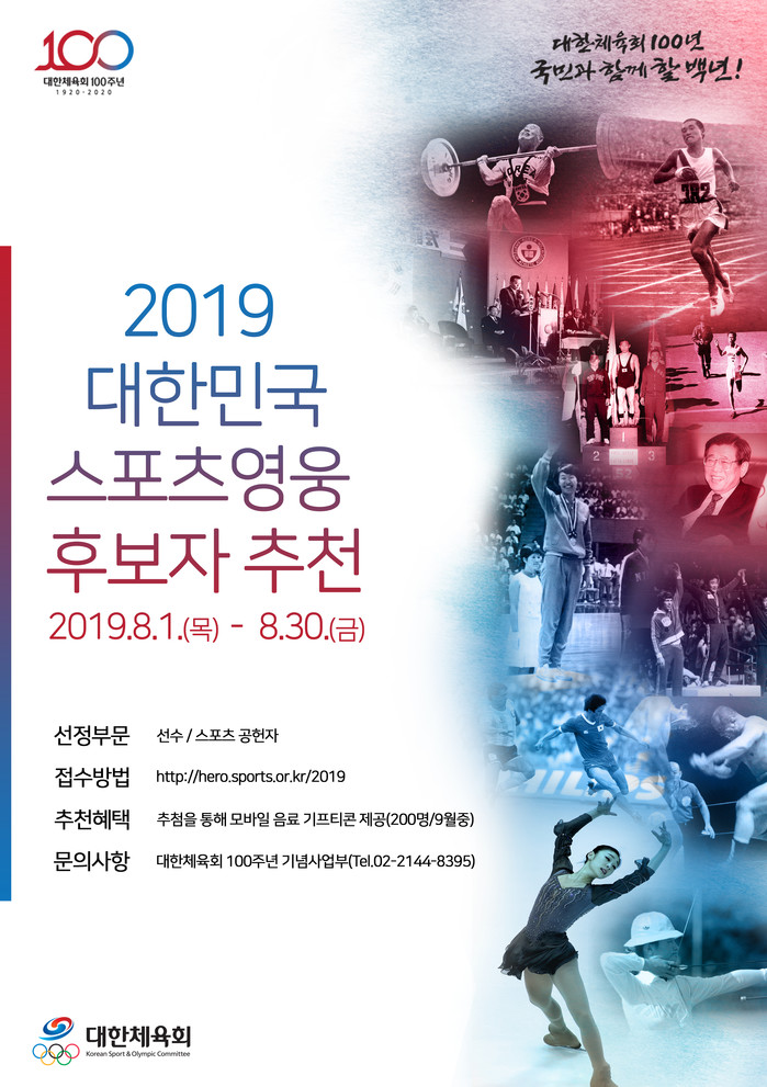 | ▲2019 대한민국 스포츠영웅 후보자 추천 접수. |