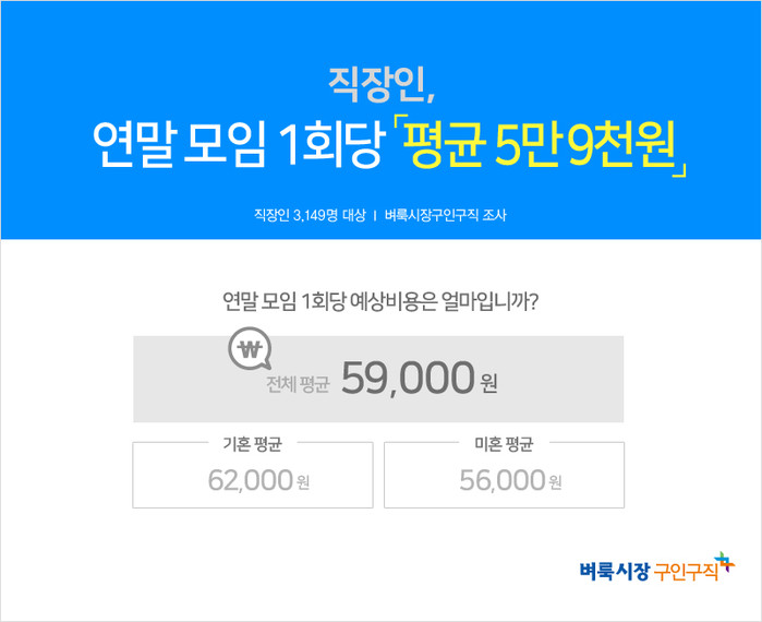| ▲ 직장인 3149명을 대상으로 설문조사한 결과 연말 모임 1회당 평균 5만 9000원 정도를 지출하는 것으로 나타났다. |