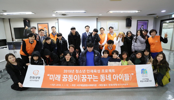 한화생명 대구지역본부(김성수 본부장)와 제일종합사회복지관(정유진 관장)은 16일 한화생명 대구지역본부 교육장에서 저소득가정 청소년 대상 인재육성 프로젝트의 종강으로 꿈 강연회를 개최하였다.