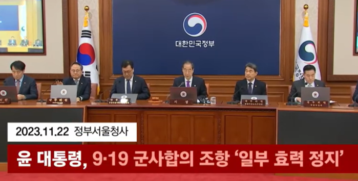 영국을 국빈 방문 중인 윤석열 대통령은 22일 한덕수 국무총리 주재 임시국무회의에서 의결된 '9·19 군사합의 일부 효력 정지안'을 최종 재가했다.