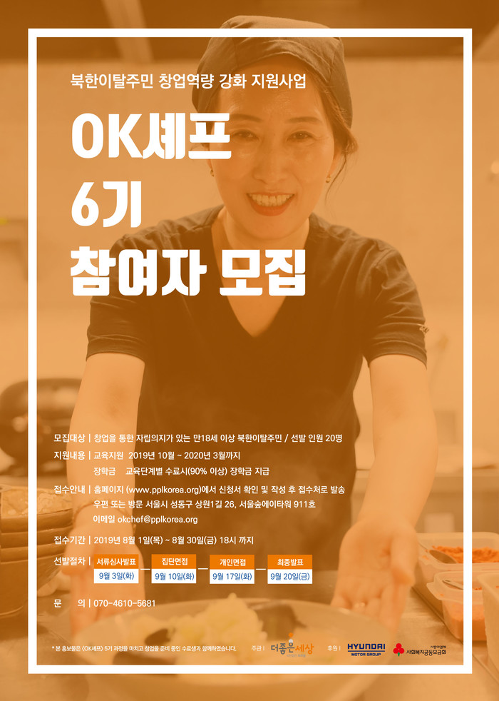 ▲북한이탈주민창업역량강화지원사업 OK셰프 6기 참여자 모집 공고 |